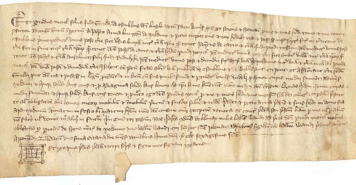 3- « Moi, Perrodus Morel... », les premiers mots du parchemin du 28 novembre 1362 : zoom résolution 1398x726